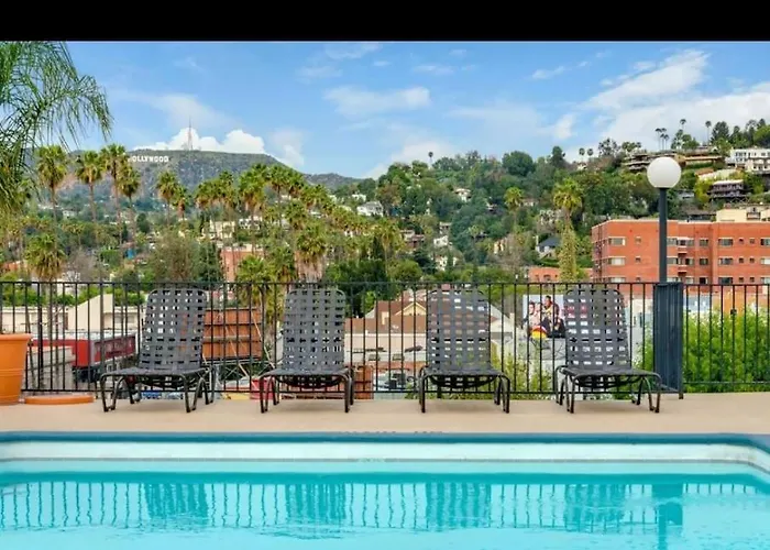The 2-room Hollywood 2Bed Apt W Rooftop Pool & Panoramic View lies around a 15-minute drive from Universal Studios Hollywood and approximately a 5-minute stroll from Hollywood - Western tube station. The apartment offers modern facilities, such as Wi-Fi and essentials like a private parking lot for car travellers.